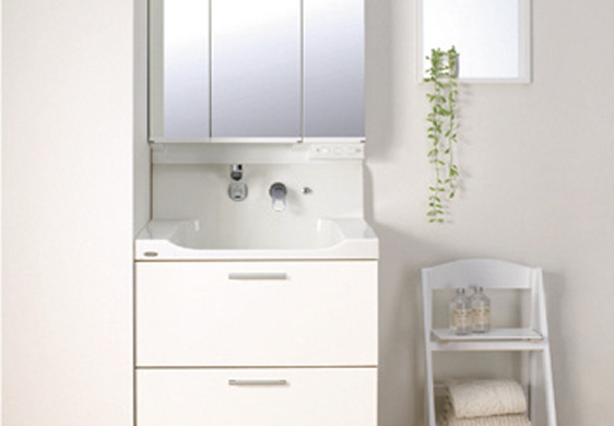 多彩なカラーから選べる扉や豊富な収納、お手入れが楽でキレイが続くボウルカウンターなど家族が毎日使う場所だから、便利で明るく清潔に保てる工夫をした洗面化粧台。