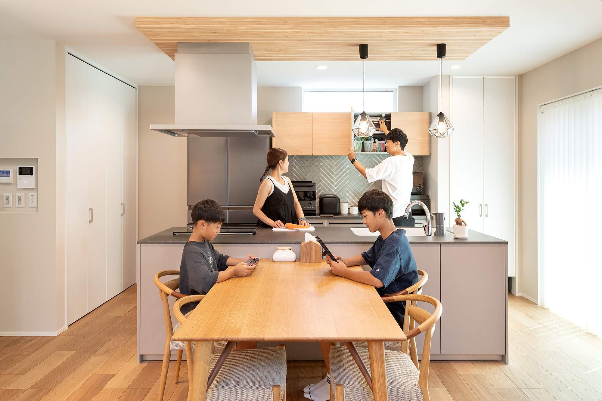 回遊動線を取り入れ、複数人での調理や片付けの手伝いもしやすい