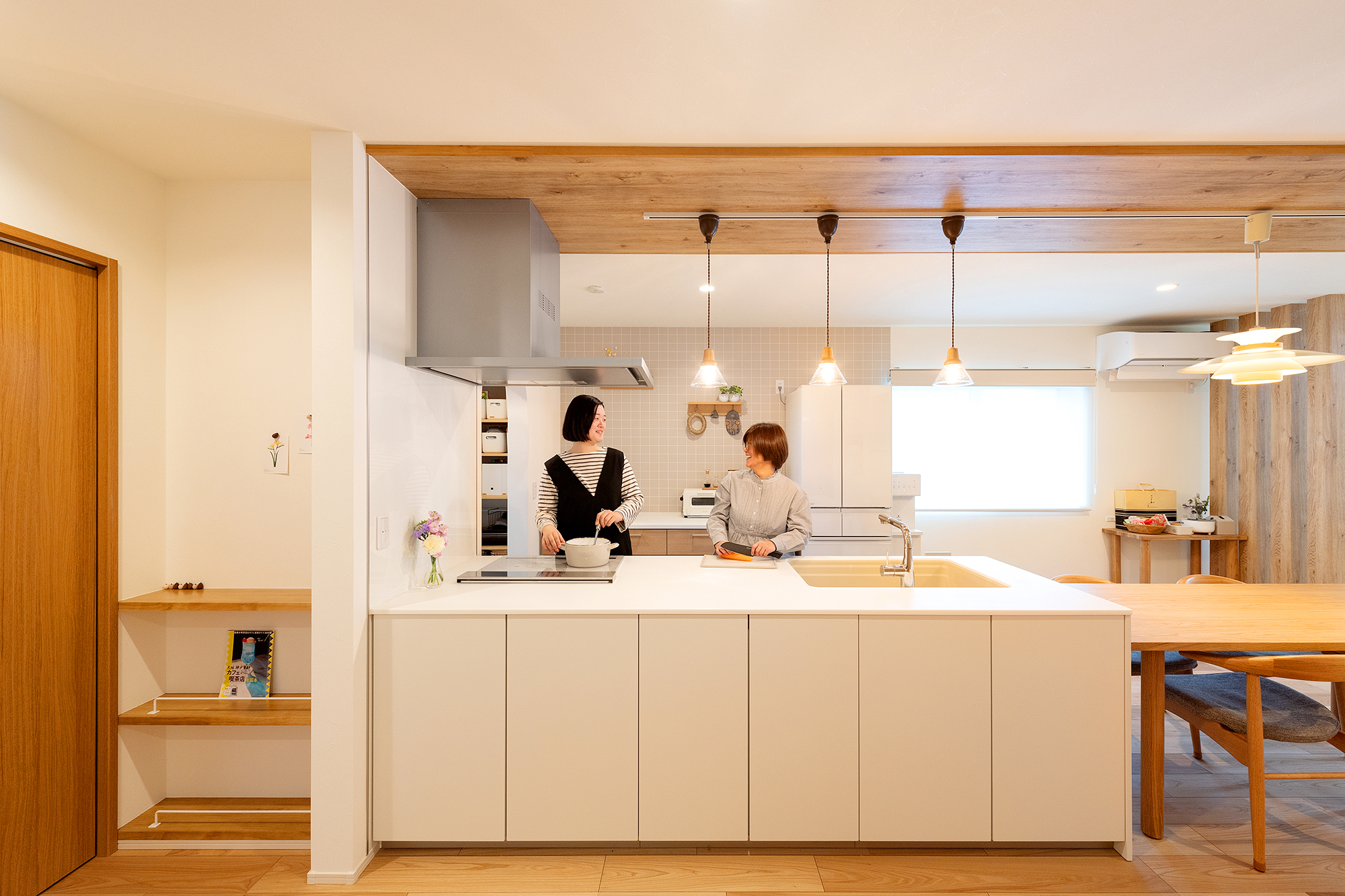 おかげで建て替えてからの暮らしは快適で、1階は間仕切りを極力減らしても夏は涼しく、冬は暖かく、キッチンにいても家族の気配を感じやすいです。