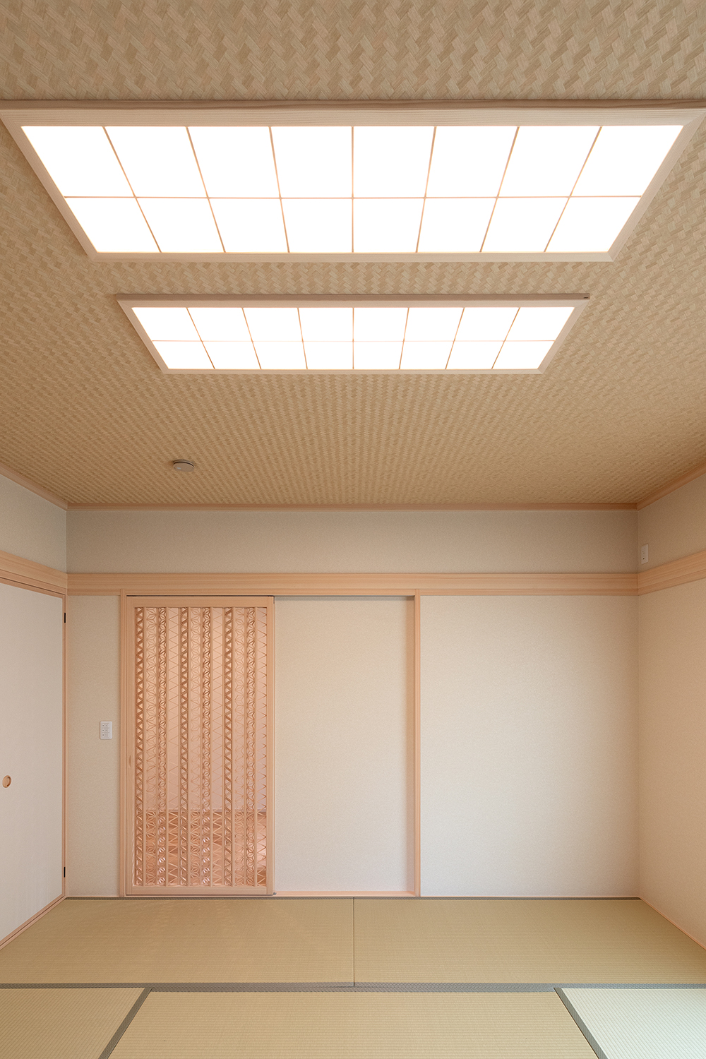 和室には和モダンを演出する組子細工を扉に採用することで、空間を緩やかにつなぎ、空調や換気性にも優れています。