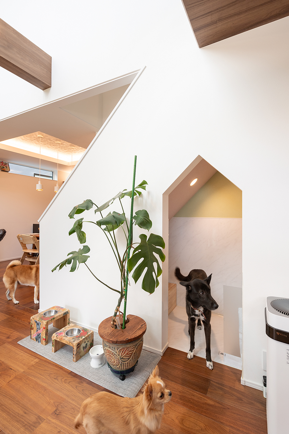 階段下スペースを有効活用した犬用トイレ。換気システム「澄家」により臭いも気になりません。