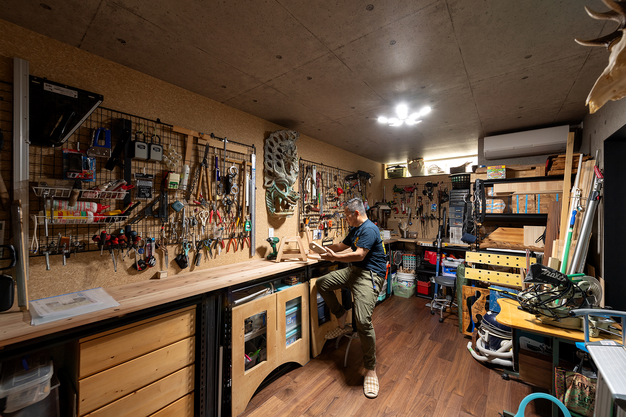 親世帯のご主人専用のDIY工房はこだわりの詰まった充実の空間です。